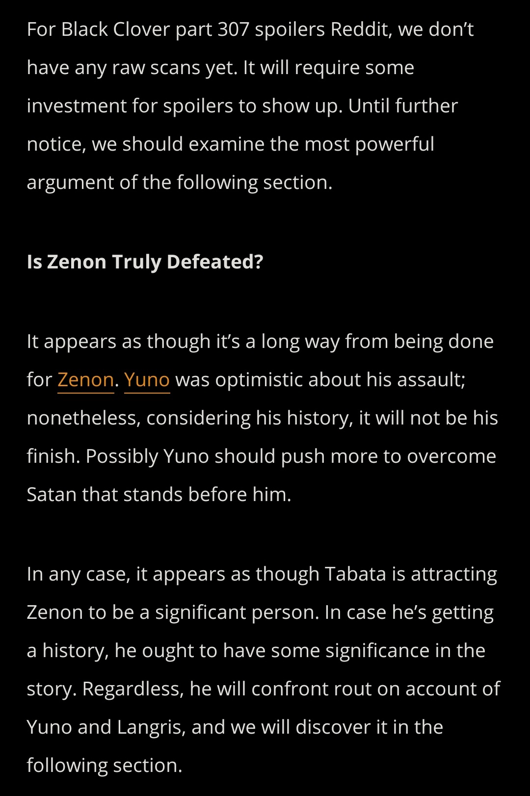 Black Clover Chapter 307 Zenon Will Return Release Date Plot Details